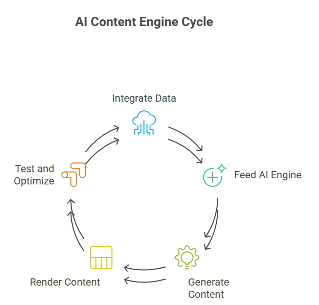Implementation requires sophisticated data architecture. Customer data platforms must integrate behavioral tracking, purchase history, and external data sources to feed AI content engines. The technical stack typically includes: