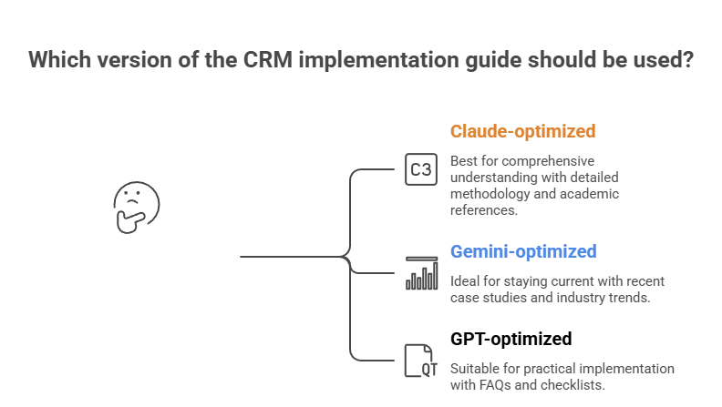 We created three versions of the same core content about CRM implementation strategies: