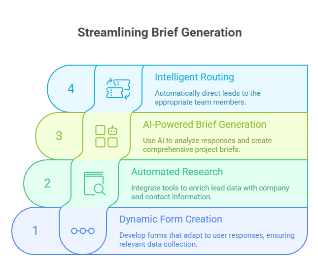 One of the most transformative automation opportunities for agencies lies in brief generation and lead qualification. Traditional discovery calls often waste 30-40 minutes covering basic information that could be collected and analyzed automatically.