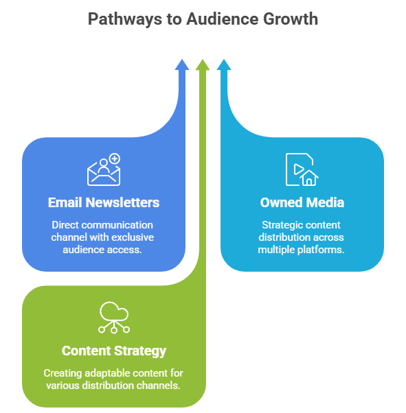 Email newsletters represent the crown jewel of owned media. They provide direct access to your audience without intermediary platforms. The data is yours, the relationship is direct, and the communication isn’t subject to algorithmic interference. Newsletter growth becomes the primary metric for audience building success.